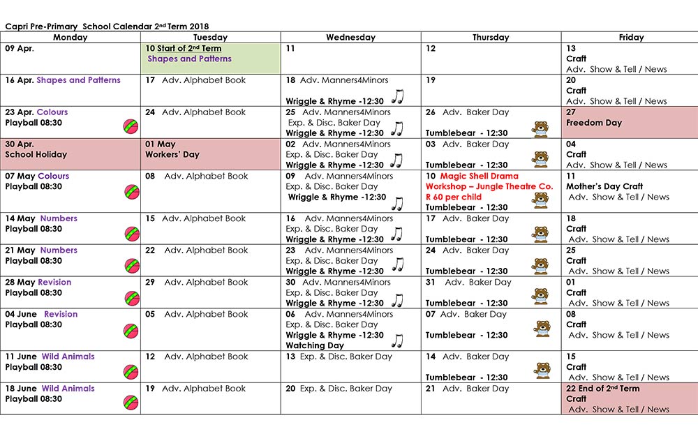Calendar School Calendar for 2018 Term 2 Download Calendar Second Term 2018 Term 1 Download Calendar First Term 2018 Share this:Share Share on X (Opens in new window) X Share on LinkedIn (Opens in new window) LinkedIn Print (Opens in new window) Print Share on Facebook (Opens in new window) Facebook Share on Pinterest (Opens in new window) Pinterest Email a link to a friend (Opens in new window) Email Like Loading...
